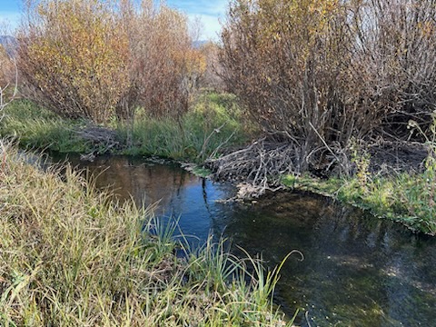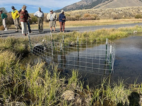 Kyle then led the group to a nearby culvert that had been subject to recurring clogging from beavers. In an effort to stop the hard-to-maintain clogging, Kyle had recently installed a beaver exclusion fence at this site to prevent beavers from accessing the culvert inlet, therefore preventing further plugging. While at the site, Marina, shared her experiences dealing with beaver conflict on the ranch she manages, including taking attendees to an active beaver lodge, and dam upstream.